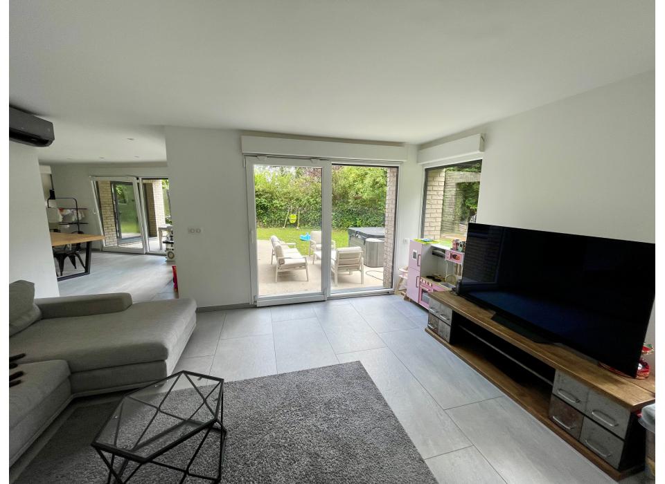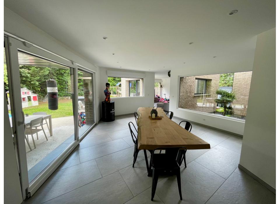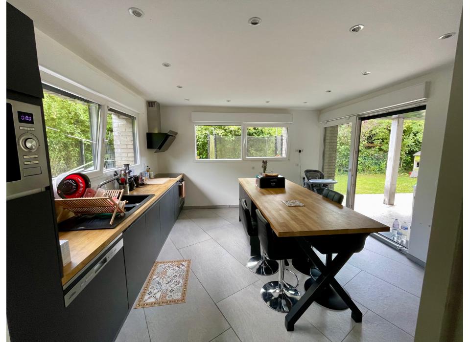 Leers secteur calme maison cubique 220m² habitables sur une parcelle de 630m², hall d'entrée, cuisine équipée, cellier, salle à manger, salon, 1 chambre et salle de bain au rez de chaussée, sur palier 4 chambres dont 1 suite parentale, salle de bain, terrasse jardin exposition sud-ouest, parking privé, grand garage traversant sur le jardin. Frais d'agence à la charge du vendeur. Montant estimé des dépenses annuelles d'énergie pour un usage standard : entre 1800 euros et 2510 euros par an indexées aux années 2021, 2022 et 2023 (abonnements compris). DPE réalisé le 04/09/2025. Les informations sur les risques auxquels ce bien est exposé sont disponibles sur le site Géorisques : www.georisques.gouv.fr