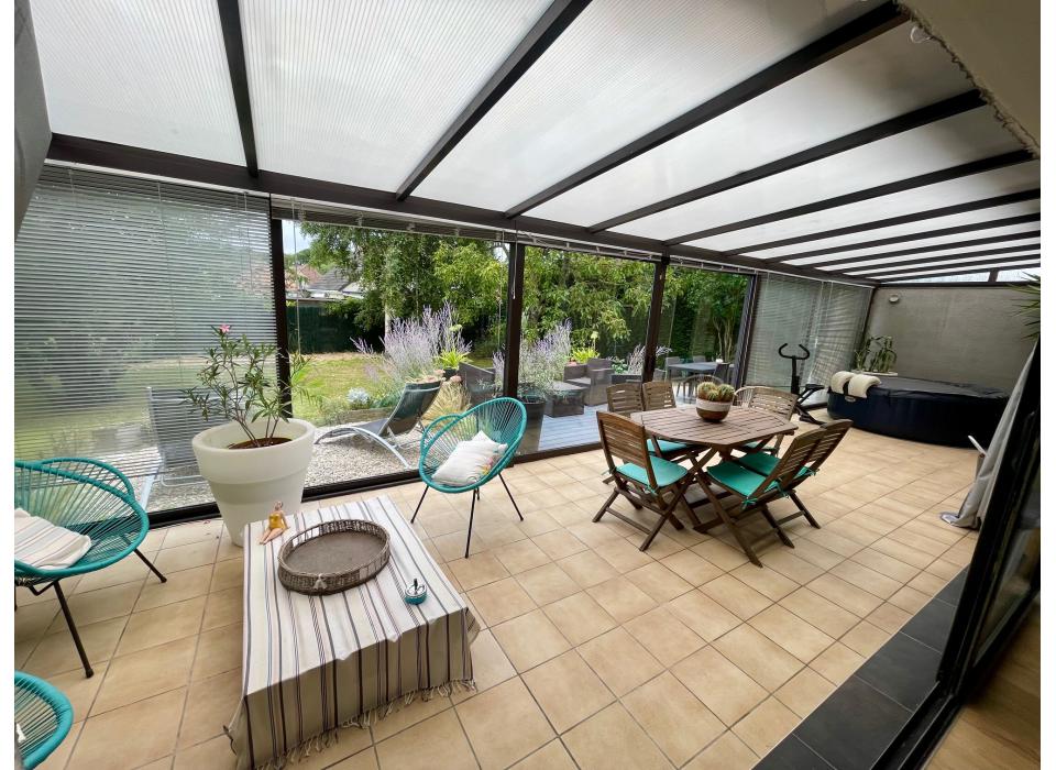 Lys Lez Lannoy Fresnoy plain pied individuel de 1977 87,6m² sur une parcelle de 769m², hall d'entrée, séjour avec poêle à pellet, cuisine équipée, véranda, 3 chambres, salle de bain avec douche, sous-sol complet avec garage 2 voitures, jardin exposition sud-ouest, parking privé. Frais d'agence à la charge du vendeur. Montant estimé des dépenses annuelles d'énergie pour un usage standard : entre 1430 euros et 2020 euros par an indexées aux années 2021, 2022 et 2023 (abonnements compris). DPE réalisé le 09/09/2025. Les informations sur les risques auxquels ce bien est exposé sont disponibles sur le site Géorisques : www.georisques.gouv.fr