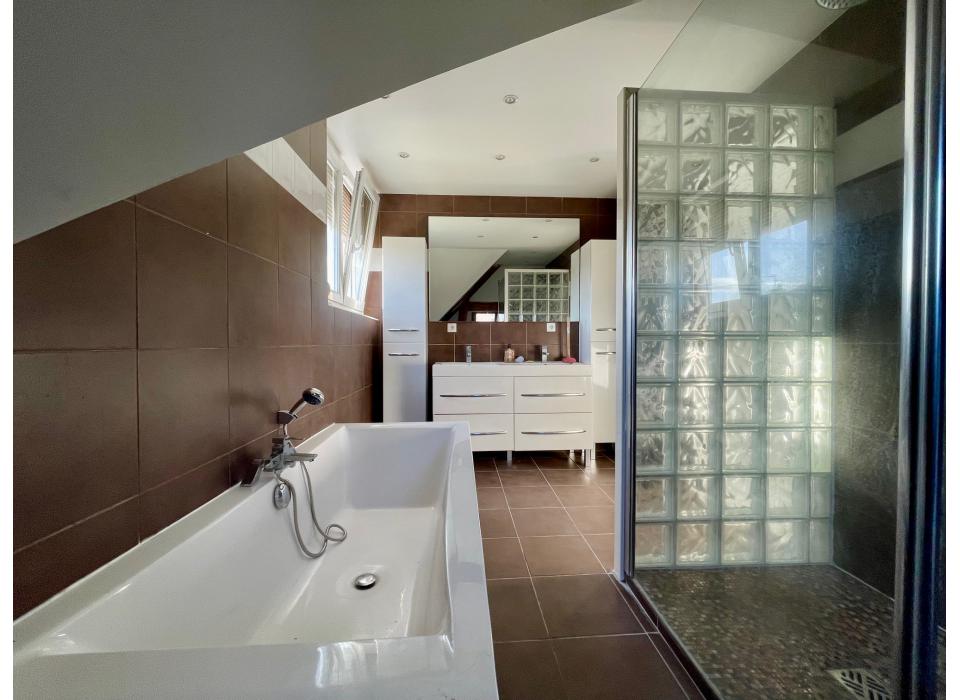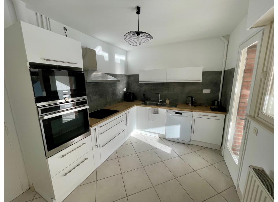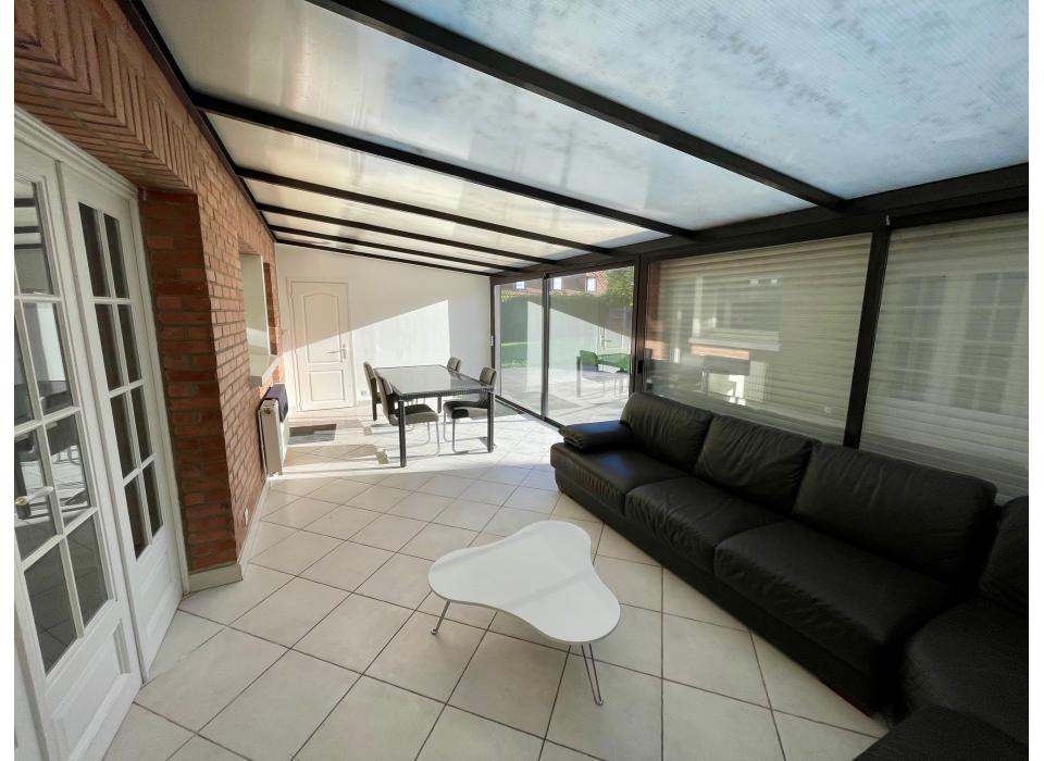 Leers maison semi individuelle de 1975 type Logecoop 129m² habitables sur une parcelle de 634m², hall d'entrée, séjour, cuisine équipée, véranda, bureau ou chambre au rez de chaussée, 3 chambres et salle de bain sur palier, jardin, garage, parking privé fermé par portail. Frais d'agence à la charge du vendeur. Montant estimé des dépenses annuelles d'énergie pour un usage standard : entre 1600 euros et 2210 euros par an. Prix moyens des énergies indexés sur l'année 2021 (abonnements compris). DPE réalisé le 16/04/2023. Les informations sur les risques auxquels ce bien est exposé sont disponibles sur le site Géorisques : www.georisques.gouv.fr