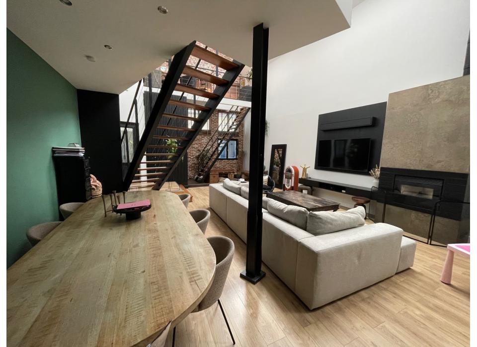 Wattrelos centre-ville superbe loft de 1997 148m² habitables, hall d'entrée, séjour, cuisine équipée avec îlot central, cellier, 3 chambres et salle de bain sur palier, chauffage central au sol + pellet. Frais d'agence à la charge du vendeur. Montant estimé des dépenses annuelles d'énergie pour un usage standard : entre 1770 euros et 2450 euros par an indexées aux années 2021, 2022 et 2023 (abonnements compris). DPE réalisé le 26/02/2026. Les informations sur les risques auxquels ce bien est exposé sont disponibles sur le site Géorisques : www.georisques.gouv.fr